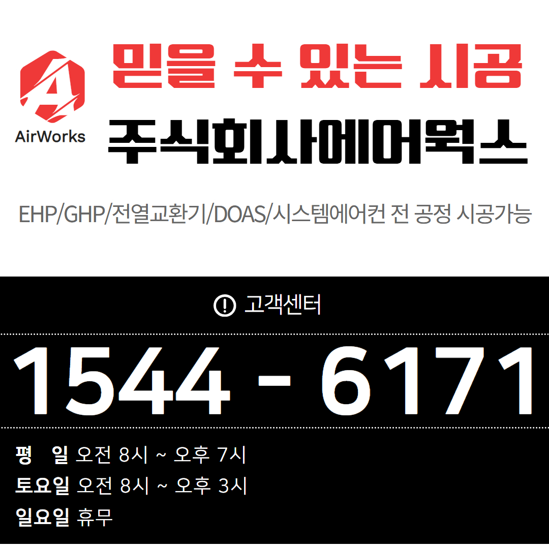 특유의 기술력으로 EHP/GHP/전열교환기/DOAS/시스템에어컨/냉난방기 전공정 시공 가능합니다.